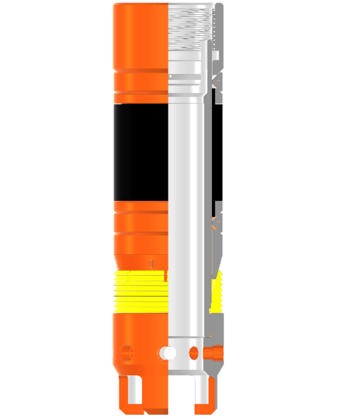 INFINITY悬挂器是一种液压坐挂式尾管悬挂工具,能够悬挂重型尾管载荷。通过管柱内外压差剪断液缸销钉以实现卡瓦沿轨道平行上移涨大从而完成坐挂。采用了最新型的设计,与锥型悬挂器相比大大提高了悬挂能力。当悬挂尾管载荷时,载荷沿圆周传递到卡瓦座上,而不是径向作用在芯轴上,避免了卡瓦下方的芯轴承受较高的载荷应力,防止悬挂器本体在高负荷作用下挤毁。同时,也消除了套管母管上的应力热点集中。